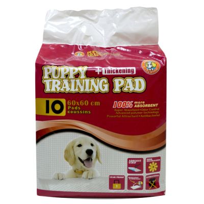 Απορροφητικές εκπαιδευτικές πάνες, ιδανικές για να δημιουργήσουν συνήθειες υγιεινής στο σκυλάκι σας. Χρησιμοποιήστε τις για τους τετράποδους φίλους μας που ζουν στο εσωτερικό του σπιτιού, όταν ταξιδεύετε, όταν μένετε σε ξενοδοχεία, καθώς και μέσα στο κρεβάτι τους ή στις τσάντες/κλουβιά μεταφοράς. Αποτελούνται από πέντε στρώματα: το 1ο εξωτερικό στρώμα είναι από υλικό υψηλής αντοχής που δεν σκίζεται από τα νύχια του σκύλου. Το 2ο και 3ο στρώμα εγκλωβίζουν τις οσμές και την υγρασία, χάρη στα ενεργά πολυμερή που έχουν την ιδιότητα να απορροφούν 3 φορές τον όγκο τους (σε αντίθεση με το βαμβάκι που το απορροφά μόνο μια φορά) ενώ παράλληλα διοχετεύουν την υγρασία σε όλη την επιφάνεια της πάνας. Το 4ο είναι επιπλέον απορροφητικό στρώμα ενώ το 5ο εξωτερικό στρώμα είναι πλαστικοποιημένο για την εξασφάλιση της υδατοστεγανότητας. Αυτό σημαίνει ότι οι πατούσες του σκύλου σας παραμένουν καθαρές και κατά συνέπεια και το σπίτι σας. Οι εκπαιδευτικές πάνες είναι κατάλληλες όχι μόνο για μικρά σκυλάκια, αλλά επίσης για θηλυκά κατά τη διάρκεια της περιόδου τους ή για σκυλάκια με ακράτεια. Επιπλέον, έχουν αυτοκόλλητα στις άκρες τους ώστε να παραμένουν σταθερές στο δάπεδο.