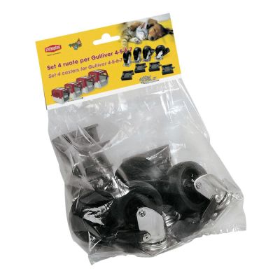 Ρόδες σχεδιασμένες ειδικά για τα κλουβιά μεταφοράς Gulliver 4, 5, 6 και 7, προσφέροντας μεγαλύτερη άνεση και σταθερότητα κατά τη μεταφορά του κατοικιδίου σας. Ιδανικές για ταξίδια, επισκέψεις στον κτηνίατρο ή μετακινήσεις στο σπίτι, εξασφαλίζουν αθόρυβη και ομαλή κύλιση. Τοποθετούνται εύκολα και σταθερά στη βάση του κλουβιού, ενώ το σετ περιλαμβάνει 4 ρόδες (οι δύο με φρένο για επιπλέον ασφάλεια).